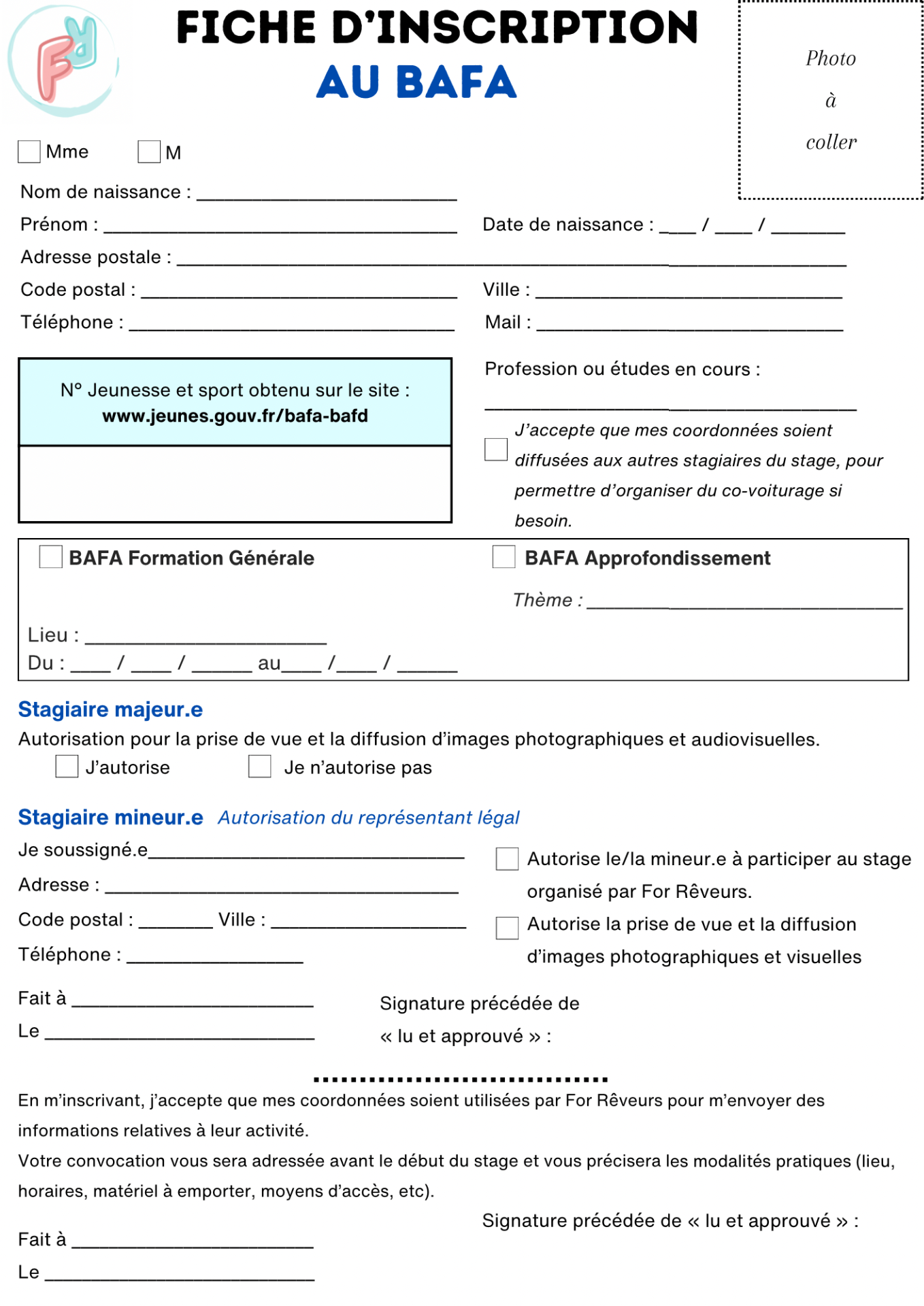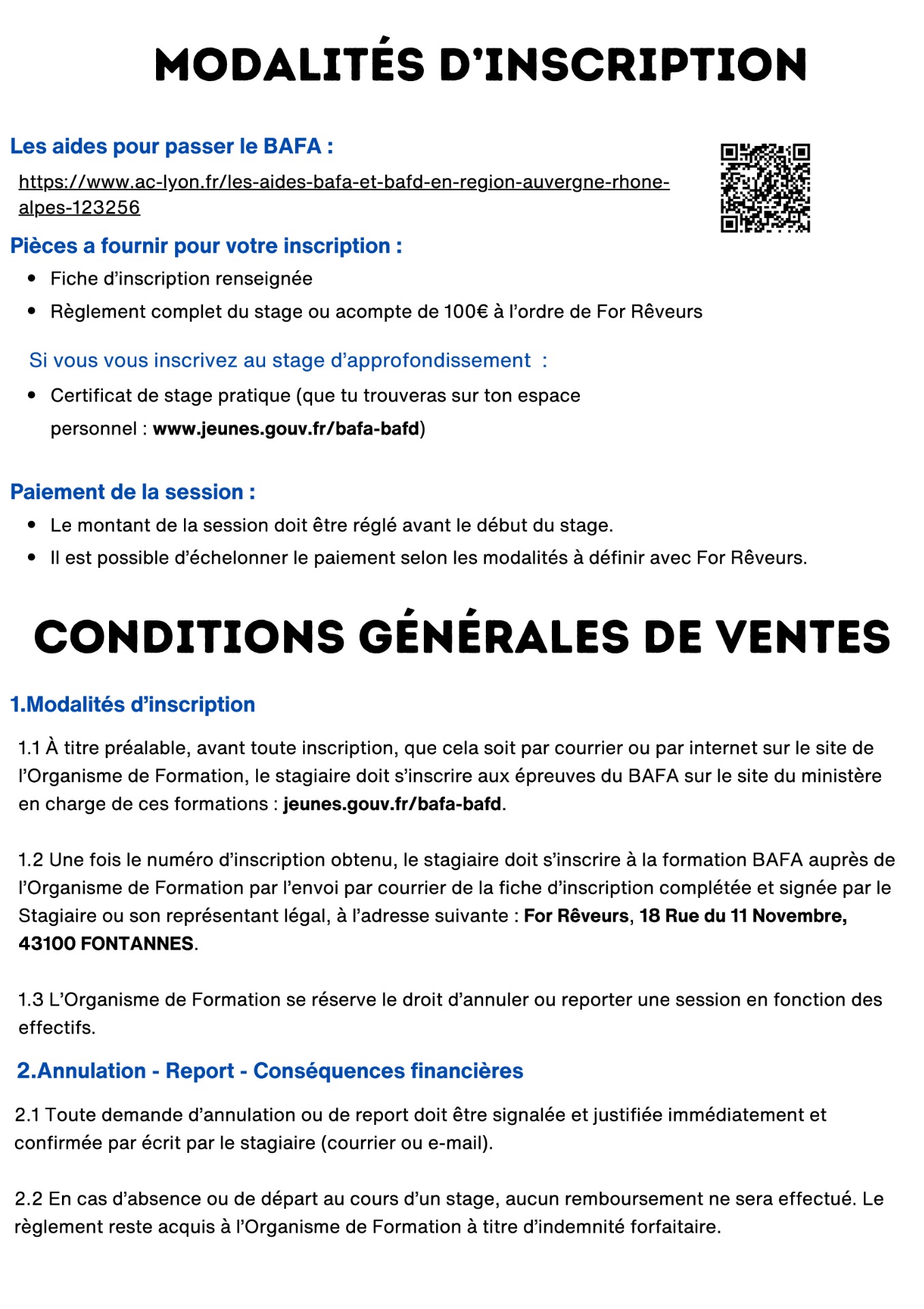 LES MODALITES D'INSCRIPTIONS ET FORMULAIRE